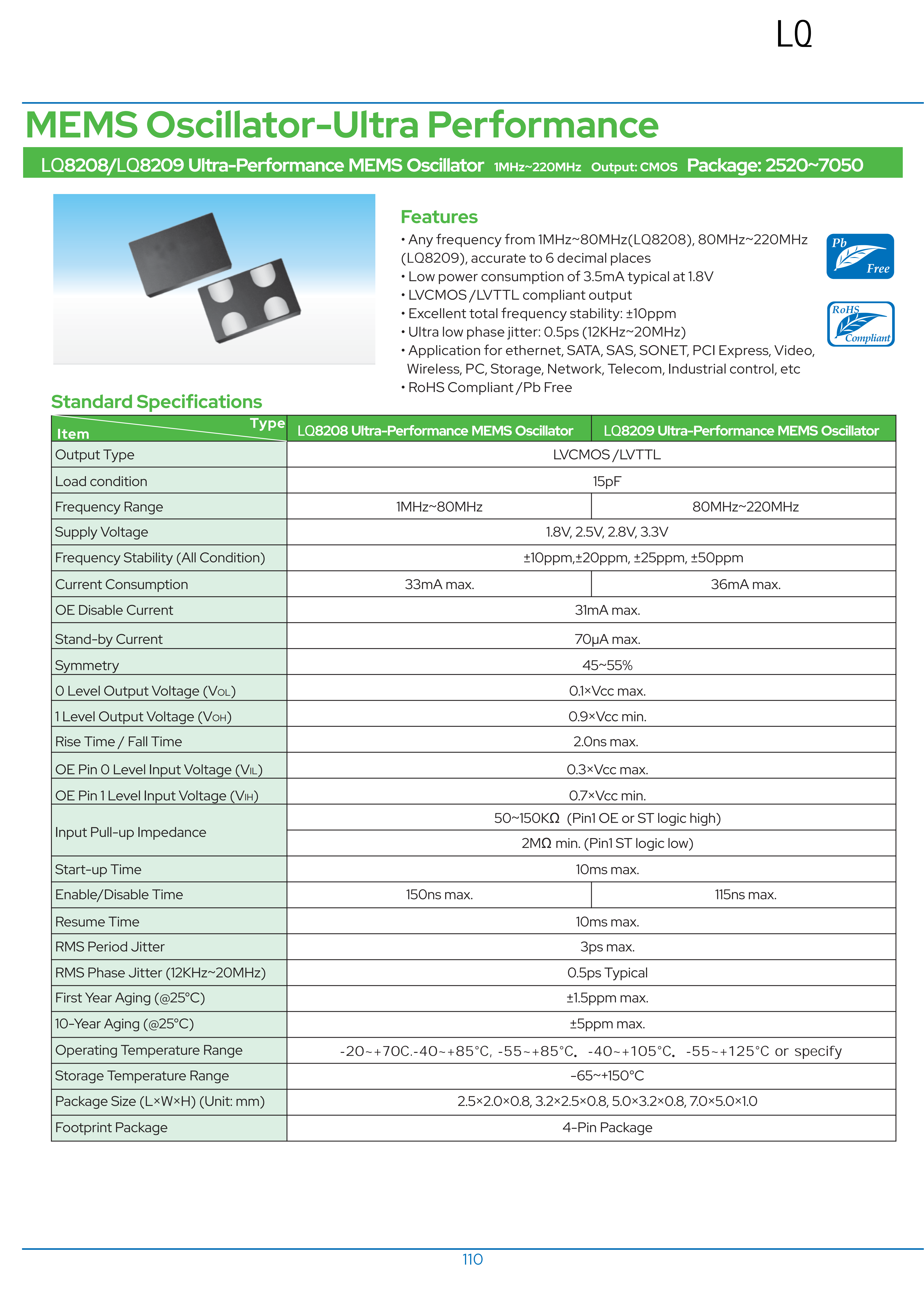 LQ8208高性能MEMS振蕩器