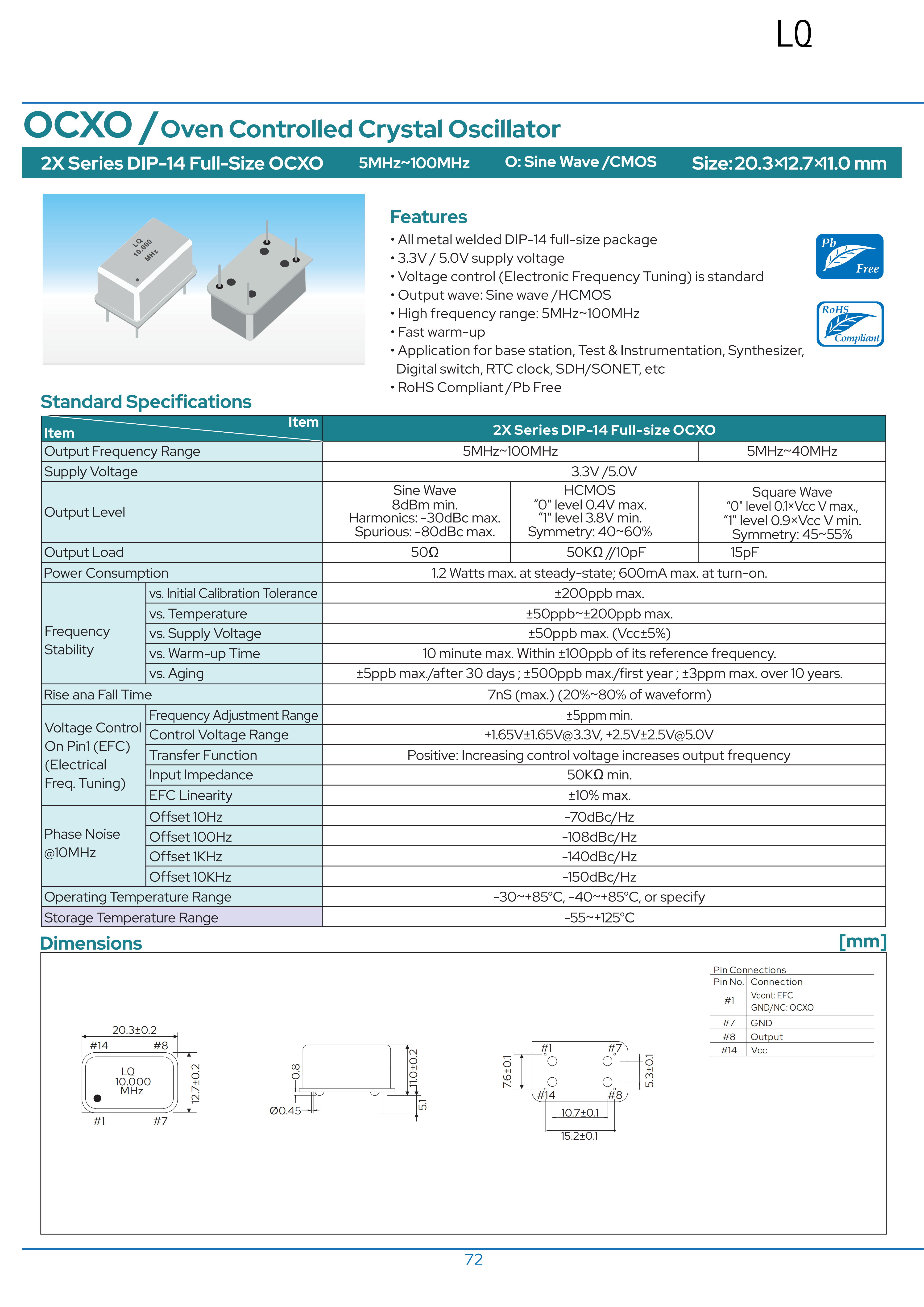 輸出波形:正弦波/HCMOS -高頻范圍:5MHz~100MHz