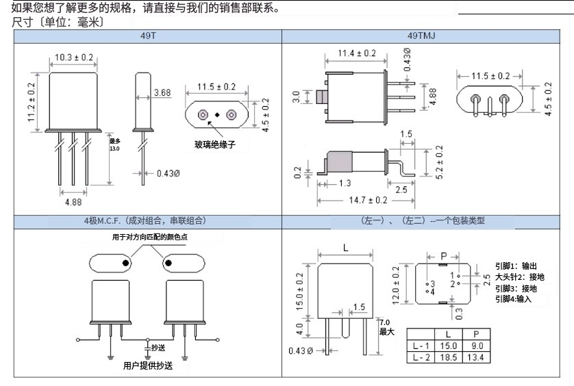 1. 采用HC-49TMJ貼片3腳封裝,可用于貼片機上線安裝