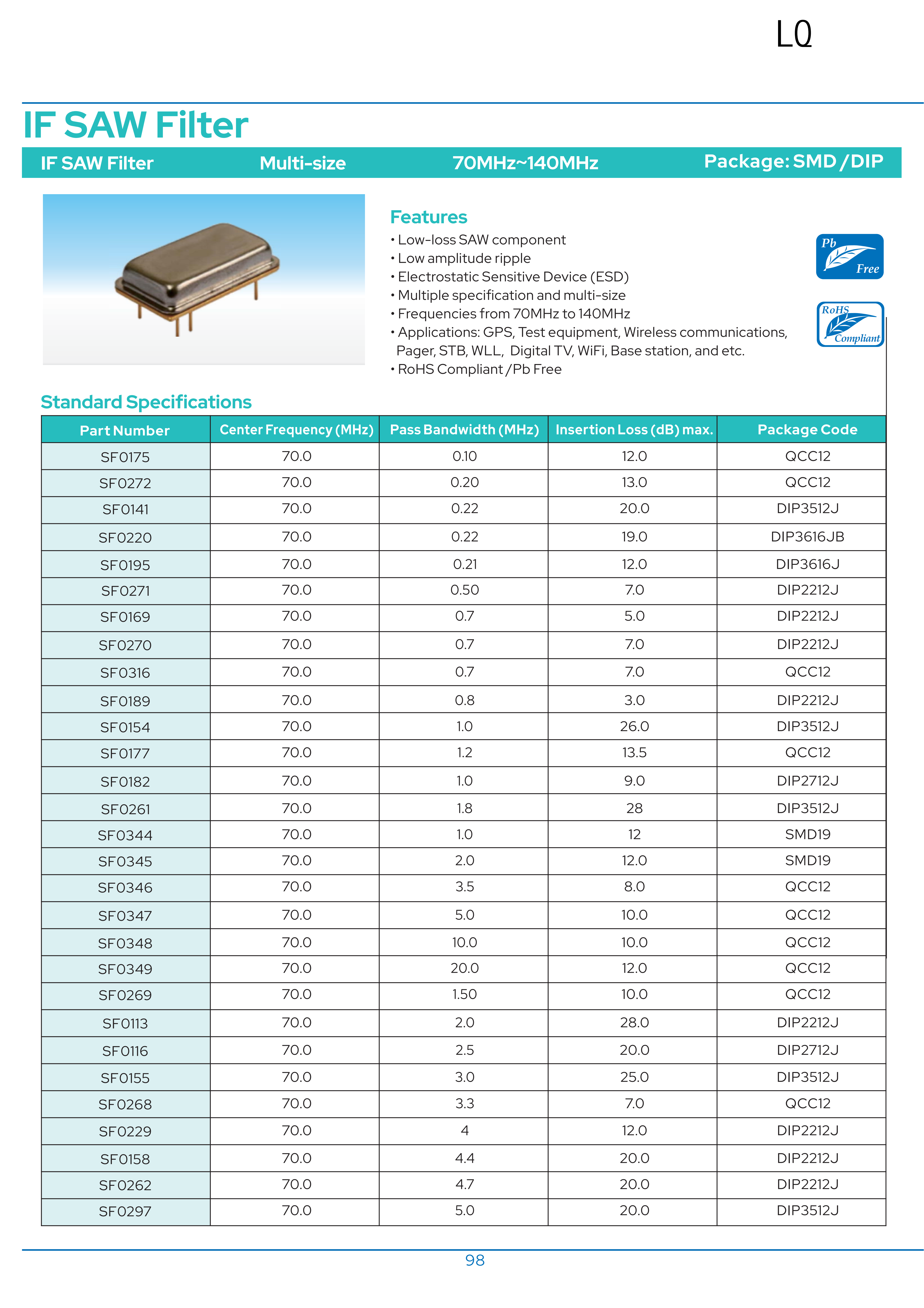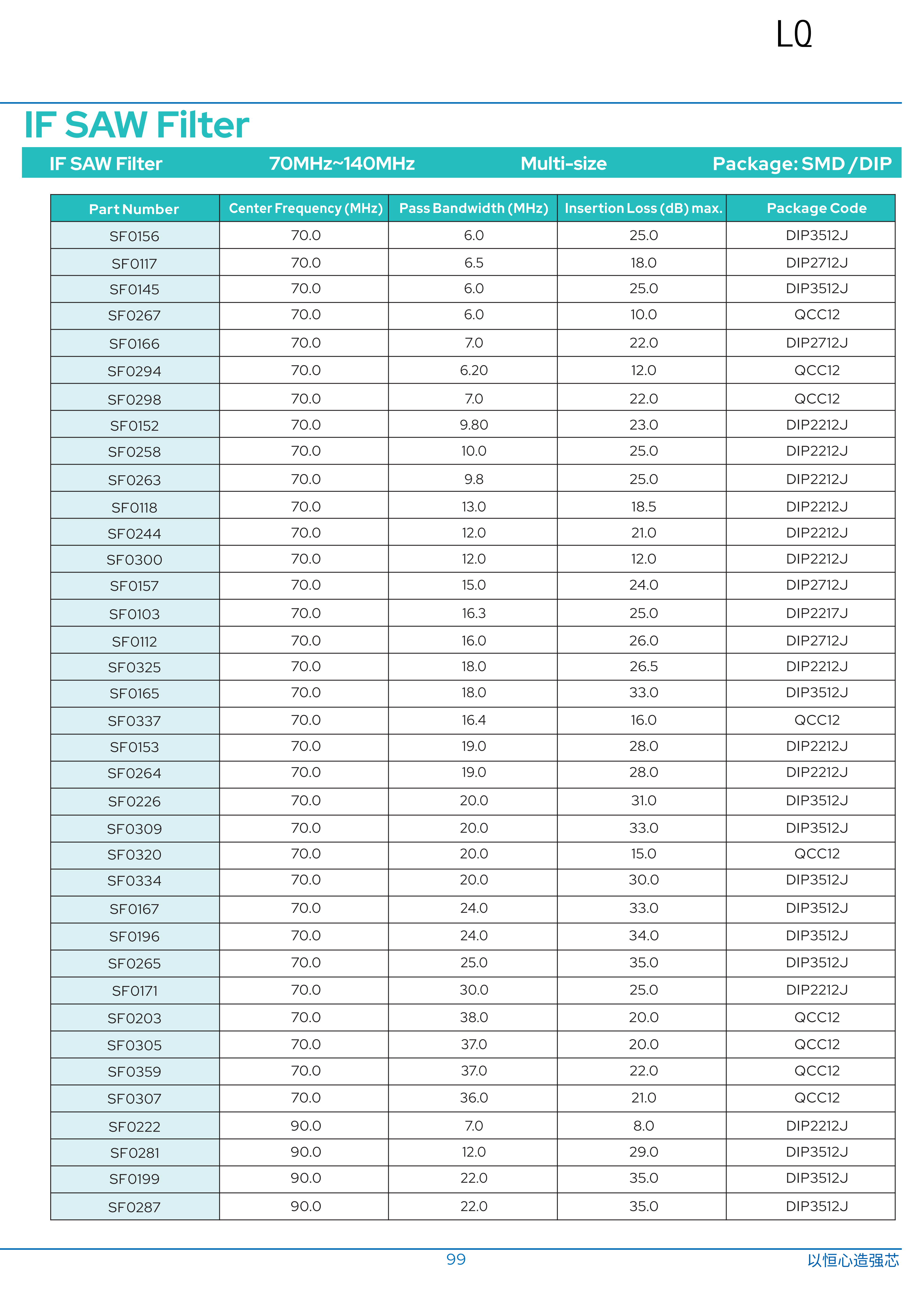1. IF聲表面波濾波器(中頻聲表面波濾波器)