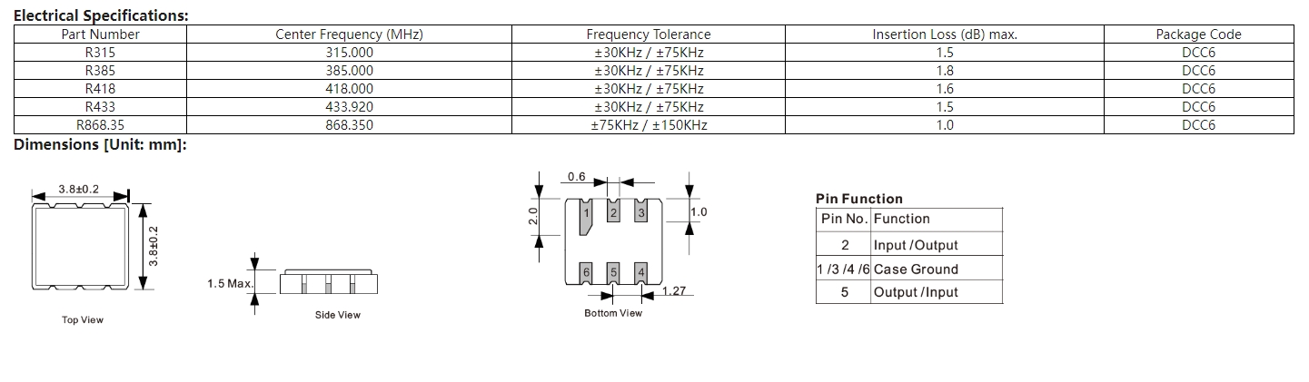 DCC6貼片聲表諧振器