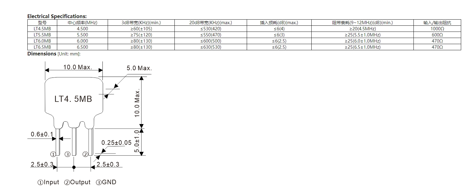 LT MB陶瓷濾波器