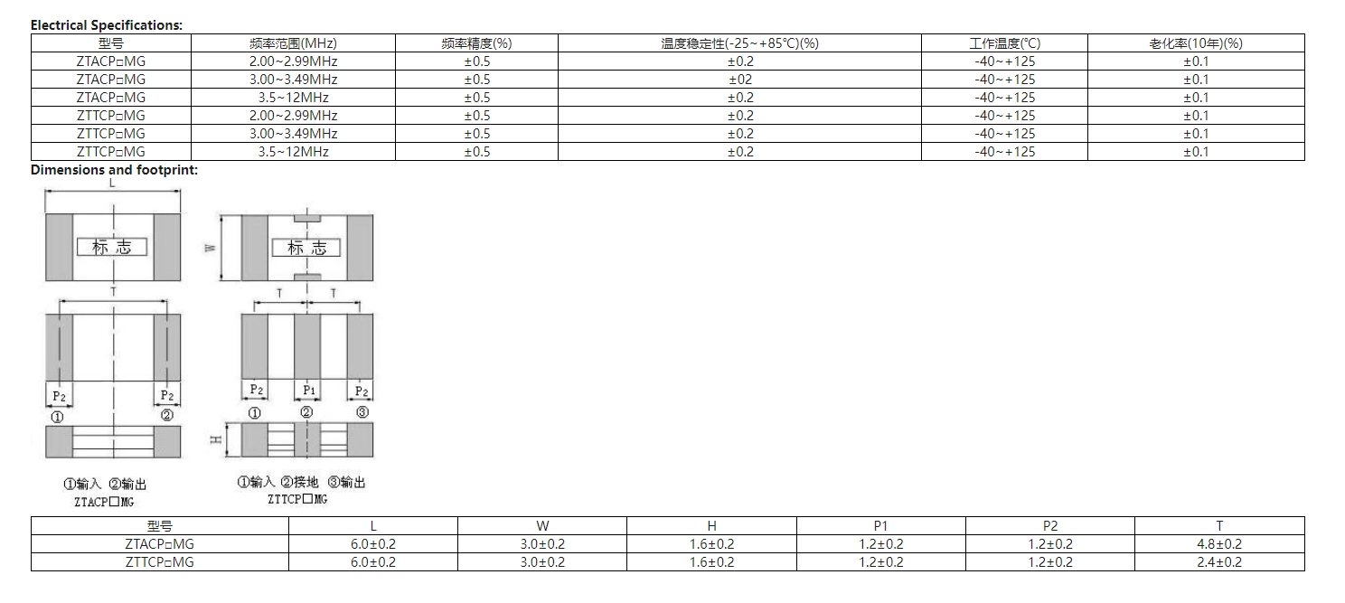 1. ZTACP/ZTTCP系列陶瓷晶振,高性價比
