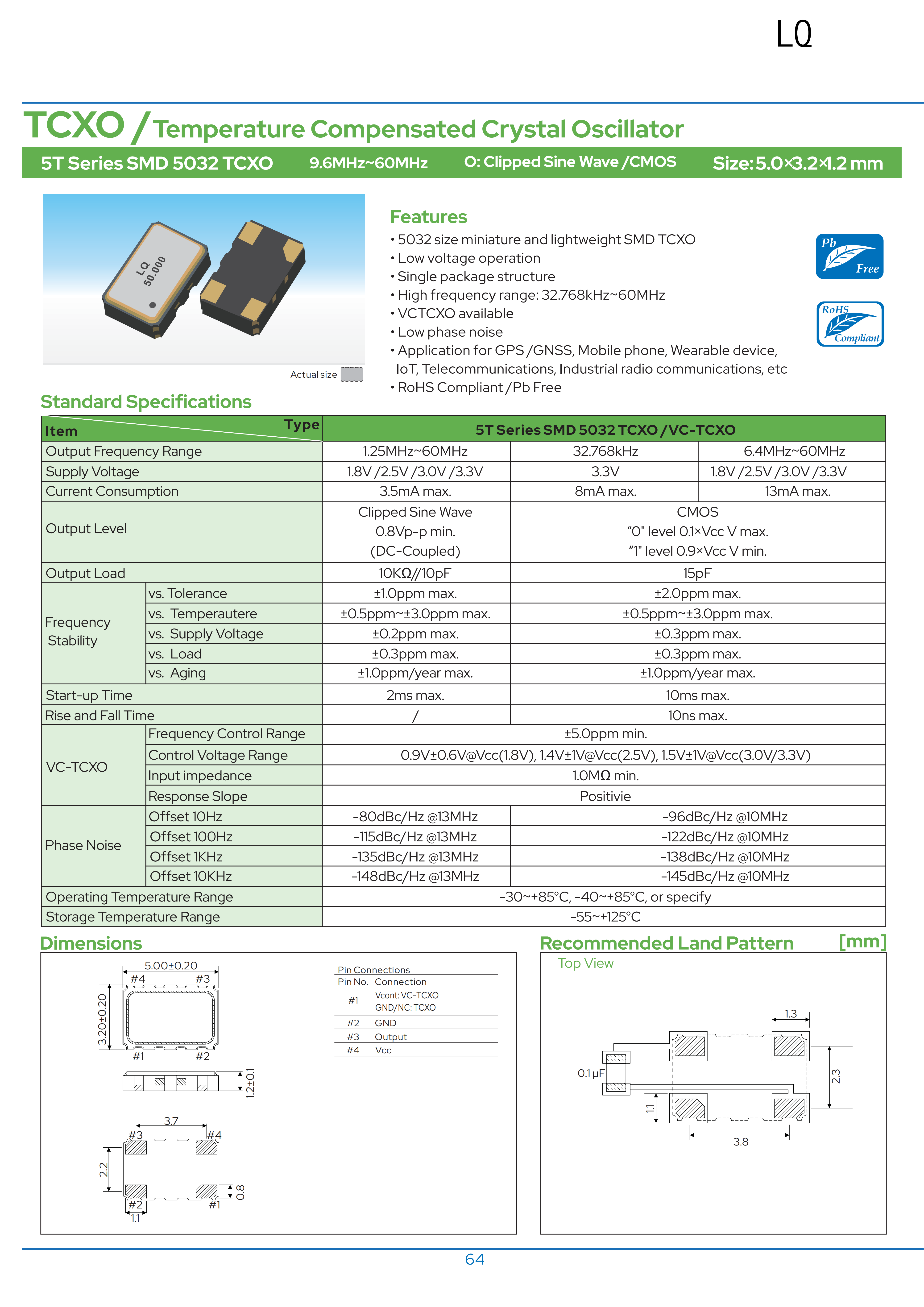 5T|SMD 5032溫補(bǔ)晶振VCTCXO