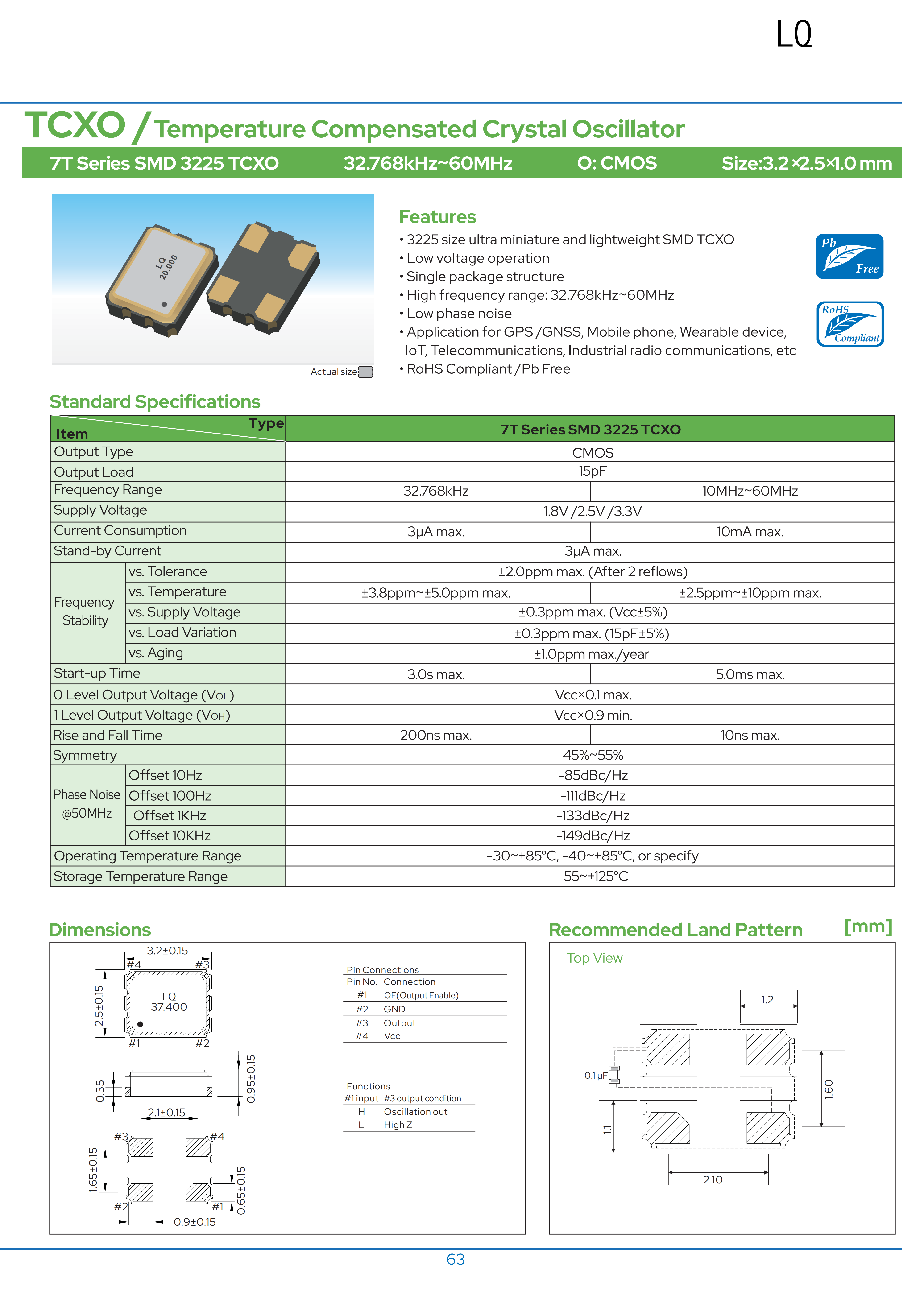 1、微小尺寸TCXO(溫補晶振),尺寸為:3.2×2.5×1.0mm。